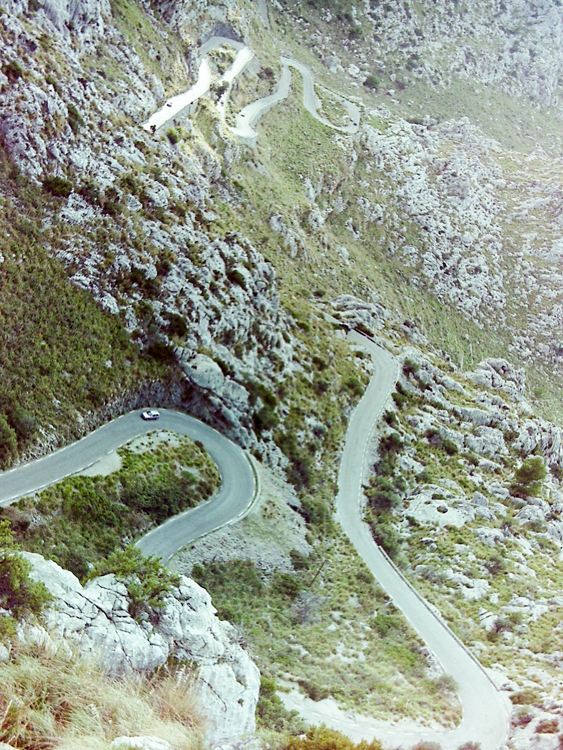 Hidden away in one corner of the western mountain range is a spectacular road. Aptly named Sa Calobra (The Cobra), it plummets via a knot-work of switchback hairpins from the heights down to the sea. There isn’t much to see at the bottom, but that isn’t important, it is the road itself that is the whole point of the journey. This area is made from a brittle white limestone that is scarred by rainfall and sculpted into the most amazing shapes. Sadly for this record, we descended in the gathering dusk and so I don’t have too many pictures, but if you’re ever on Mallorca with access to any vehicle at all, my advice is simple: drive it down The Cobra. You won’t regret it.