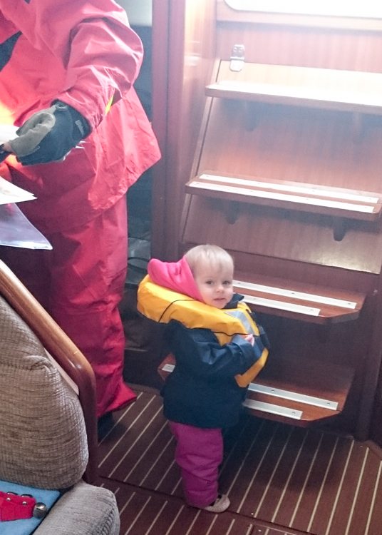Then, finally, we caught a rain squall that had us breezing along at 7 knots on a single-reefed main alone, for a whole glorious hour.