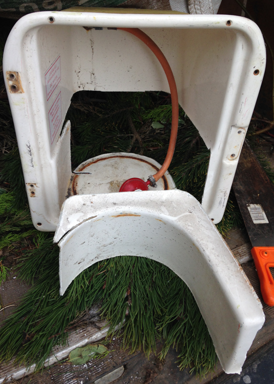 Thankfully, the Sweden’s engine bilge has a baffle that prevents it from spilling into the other bilges unless it is really really full, so the problem was fairly contained. We made a start with the ever-so-useful Puppy pads that I always keep to hand, aided by a plastic scoop fabricated from a plastic water bottle. Then we scattered laundry powder into the remainder to make it clump, so that I could lift it out with kitchen paper. Finally I polished the whole area with dish detergent followed by wet-wipes. When we were done, we had a full bucket of sopping debris, but the aft cabin smelled clean again.