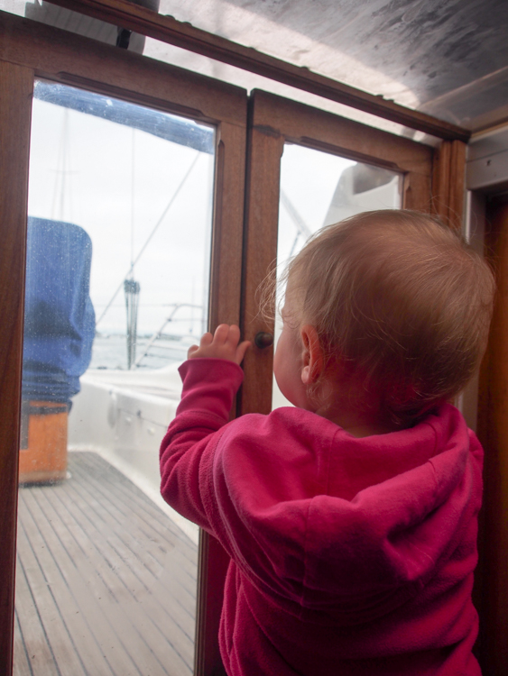 All in all, that was about it. A list to starboard (revealed by mismatched watermarks along either side of the hull) turned out to be caused by an empty water tank. There was a crack in the autopilot housing which would need to be replaced, and a leak in the aft cabin which seemed to come from rain dripping down the autopilot unit itself. Keeping the pedestal cover on when moored in wet weather would see to that. In fact, there did not seem to be any reason why we shouldn’t buy her, so we did.